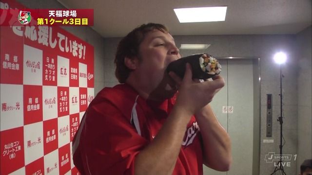 節分に食べると縁起がいいとされる恵方巻きに舌鼓を打つと「おいしい。カープの優勝と自分の1年間の健康、家族の幸せを考えながら食べたよ」と満面の笑みを浮かべていた。