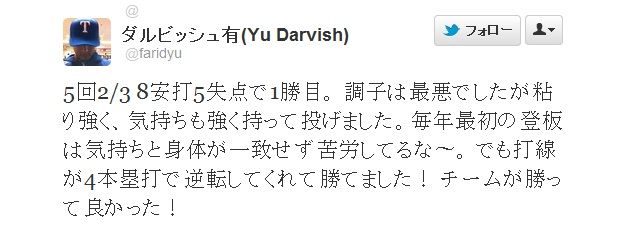 ダルビッシュ有(Yu Darvish)?@faridyu返信